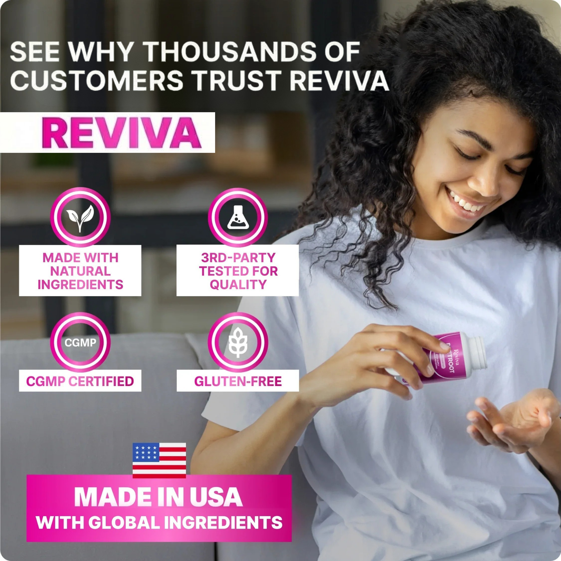 Reviva is intended for adults. If you are pregnant, nursing, taking medications, or have a medical condition, consult your physician before use.